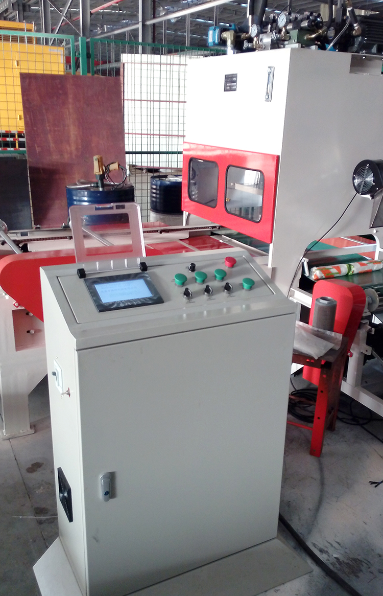 成型機;將攪拌好的濕坯倒入成型機擠料設施,通過(guò)二道擠壓,進(jìn)入細坯機構成片帶形狀,再經(jīng)沖壓成蚊香狀濕坯。plc控制伺服系統。